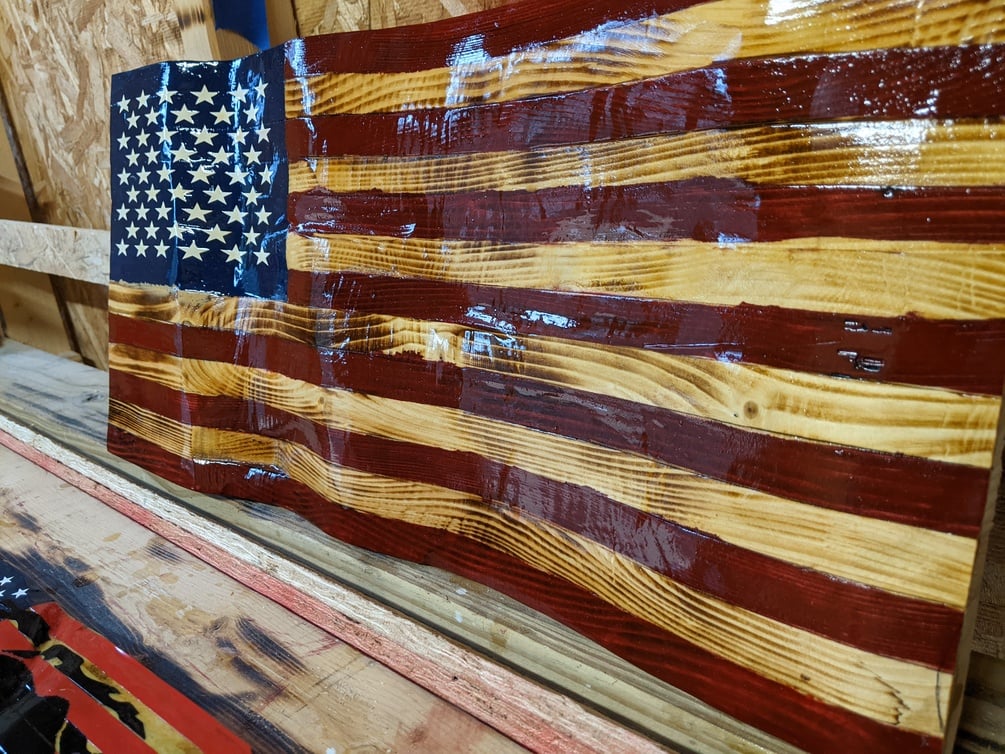 Waving American flag$165$165https://schema.org/InStockusdSmitty0 ratingsHandcrafted lightweight wood burned stained American flag that appears to be waving in the wind the wood used is charred and stained never paintedQuantityBuy thisAdd to wishlist New wishlist